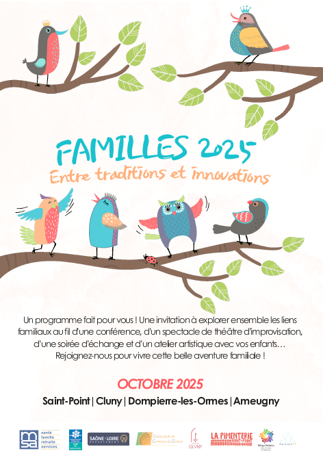 Le réseau parents 71 de Cluny organise différents évènements : une conférence « C’est quoi une famille en 2025 ? », théâtre d’improvisation, ateliers Typographie, soirée d’échange sur le thème de la famille, à partir du 8 octobre 2025.